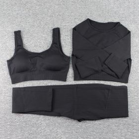 Hollowing Out Seamless Activewear Gym Wear One Shoulder Women Yoga Sets Fitness 3PCS Workout Clothes Sport Suit (black: XL)