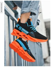 Men Women Casual Sneakers Mesh Breathable Comfortable Lightweight Damping Outdoor Running Walking Shoes Summer Spring Autumn New (Color: Black Orange)