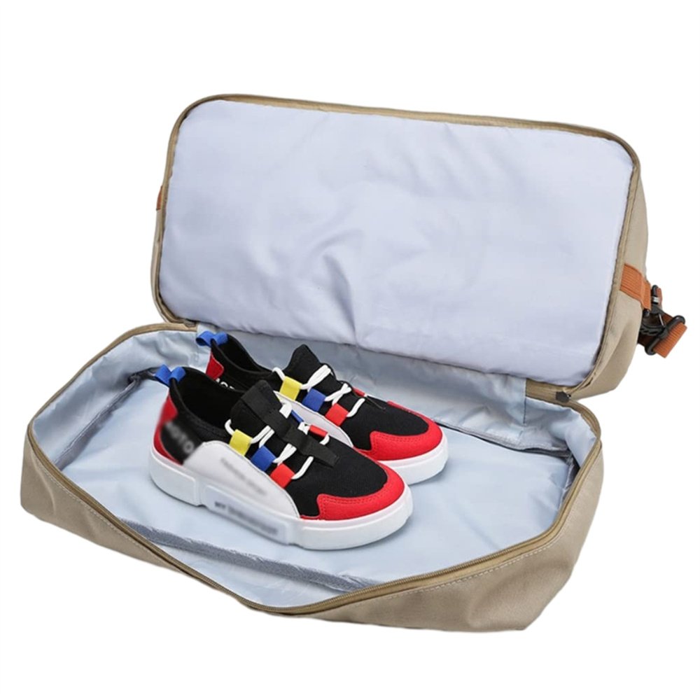 3.Separate Shoe Compartment: The bottom of the bag features a separate zippered compartment for shoes, keeping them away from your clean clothes and maintaining hygiene.