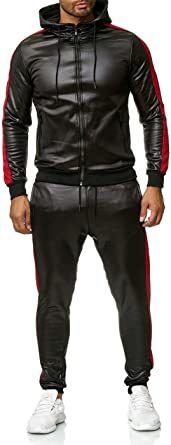 Men's 2 Pieces Tracksuits PU Leather Casual Running Jogging Athletic Outfits Suit Full Zip Sports Sweatsuits Men's 2 Pieces Tracksuits PU Leather Casual Running Jogging Athletic Outfits Suit Full Zip Sports Sweatsuits